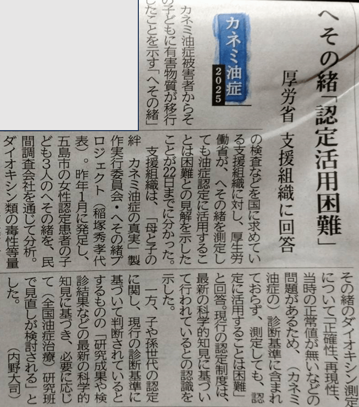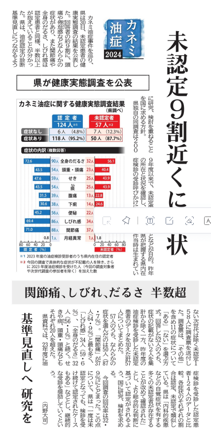 ★カネミ油症未認定、9割近くに症状(5月31日)NEW!