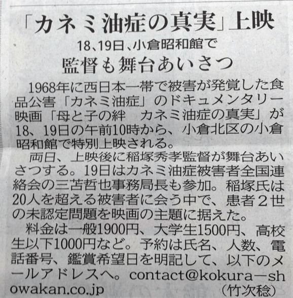●「カネミ油症映画」コラボ上映会のお知らせ!