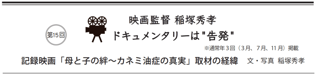 ドキュメンタリーは”告発” 記録映画「カネミ油症の真実~母と子の絆の真実」の経緯 稲塚監督が紙の街の小さな新聞ひらく (2023年11月号)に投稿、掲載された記事を紹介します。 共有: クリックして X で共有 (新しいウィンドウで開きます) X Facebook で共有するにはクリックしてください (新しいウィンドウで開きます) Facebook いいね 読み込み中… 関連
