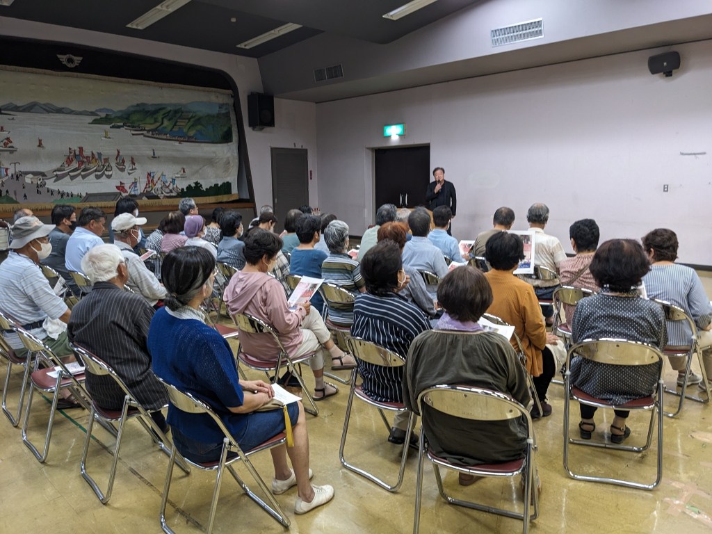 9月8日そして9日、五島市奈留町離島開発センター、三尾野福祉保健センターでの先行試写会を行いました。(藤原寿和)