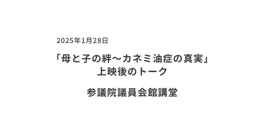 映画「母と子の絆~カネミ油症の真実」の国会上映会を1/28(火)に参院会館で催したことは既に以下の投稿でお知らせいたしました。