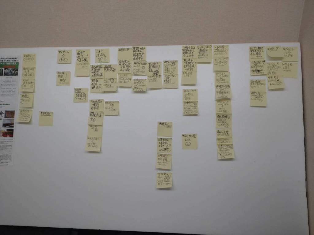「ペタペタ」とは、編集の項目を書いた紙を白板などの並べ、