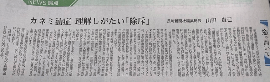 1968年、カネミ倉庫(北九州市)製の食用の米ぬか油にダイオキシン類が混入する「カネミ油症」が発覚した。皮膚や内臓の疾患、全身の倦怠(けんたい)感などの被害の訴えは、長崎県や福岡県など西日本一帯から約1万4千人に上った。